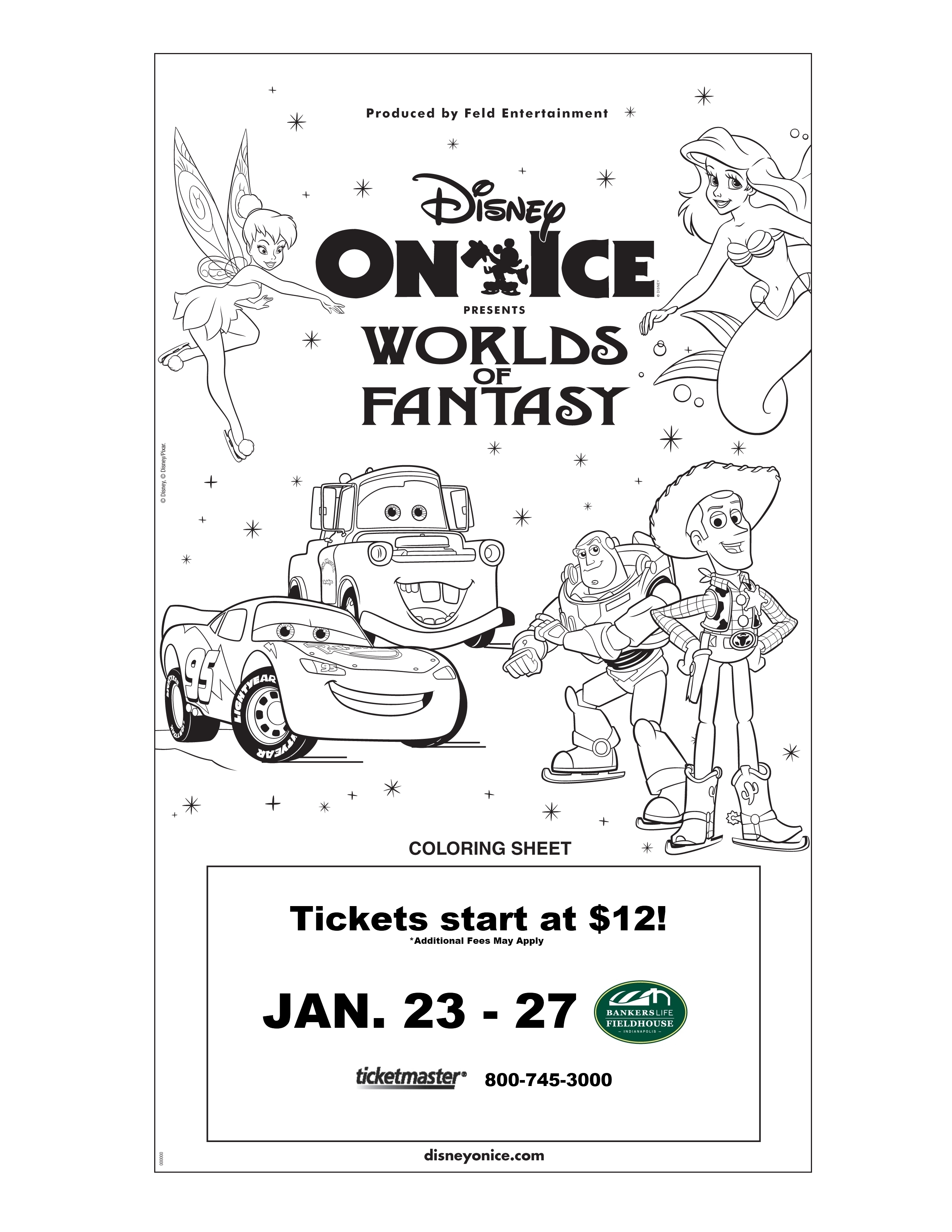Rev up for non-stop fun with four of your favorite Disney stories at Disney On Ice presents Worlds of Fantasy. Thrill to high-speed stunts as Lightning McQueen, Mater and the crew of Disney/Pixar’s Cars race across the ice. Dive into The Little Mermaid’s enchanting undersea kingdom and enter the mystical world of Pixie Hollow with Tinker Bell and the Disney Fairies as they reveal the magic that lies within! The toys are back in town with heroic action when Buzz Lightyear, Woody, Jessie, and the Toy Story gang escape from the rambunctious tots of Sunnyside Daycare and race for home, in their most daring adventure ever! From wheels to waves, playtime to pixie dust, your family’s favorite Disney moments come to life at Disney On Ice presents Worlds of Fantasy with dazzling skating, special effects and beloved characters certain to create a lifetime of memories.