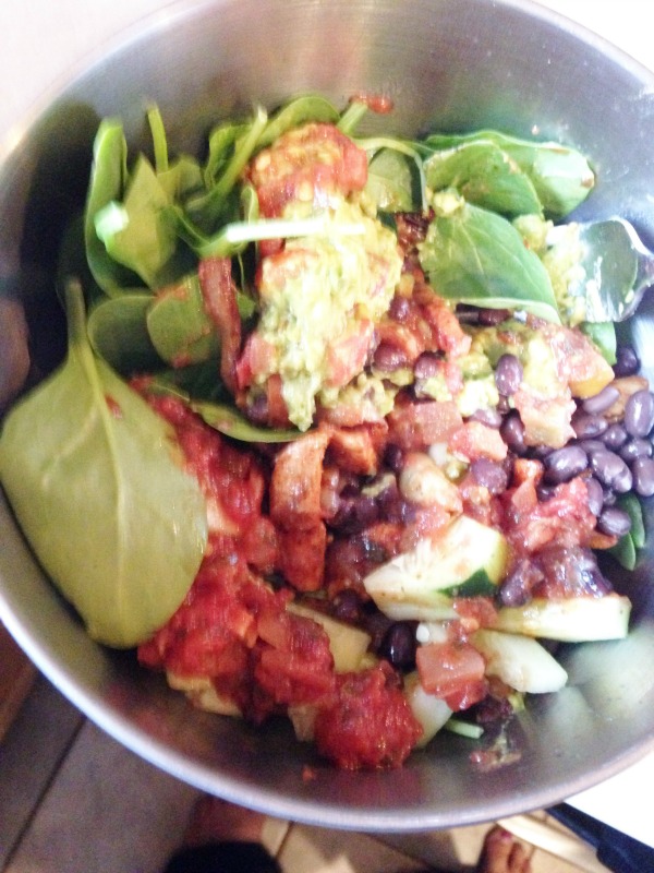 Chicken or Lean Ground Beef Taco Salad with Black beans, Spinach, and Organic Low Sodium Salsa