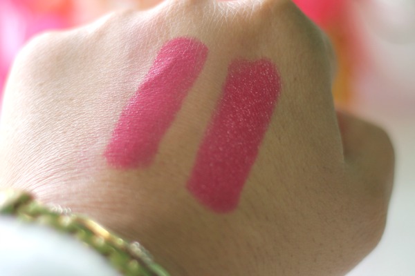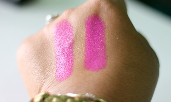 Mac Happy go lucky on the right // Maybelline Fuchsia Fierce on the Left