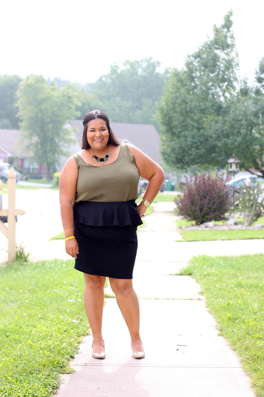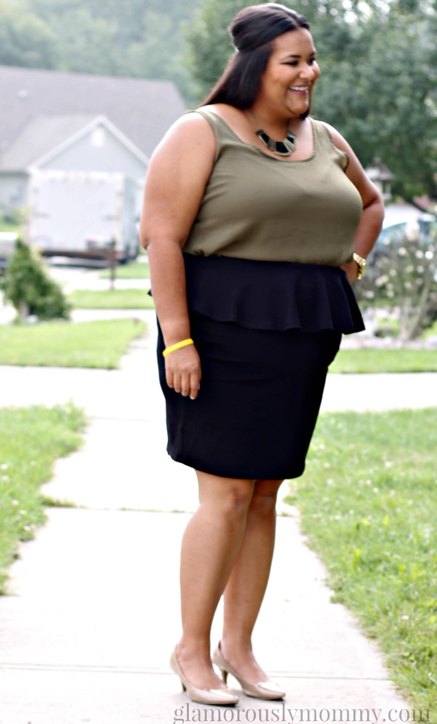 Some may say, “no, it draws attention your belly and makes it look larger.” I say, “No, it actually hides the fullest part of my body under that peplum”. And y’all know I’m a “rule” breaker and I say rock what you have now, and don’t focus on you will want in the future.