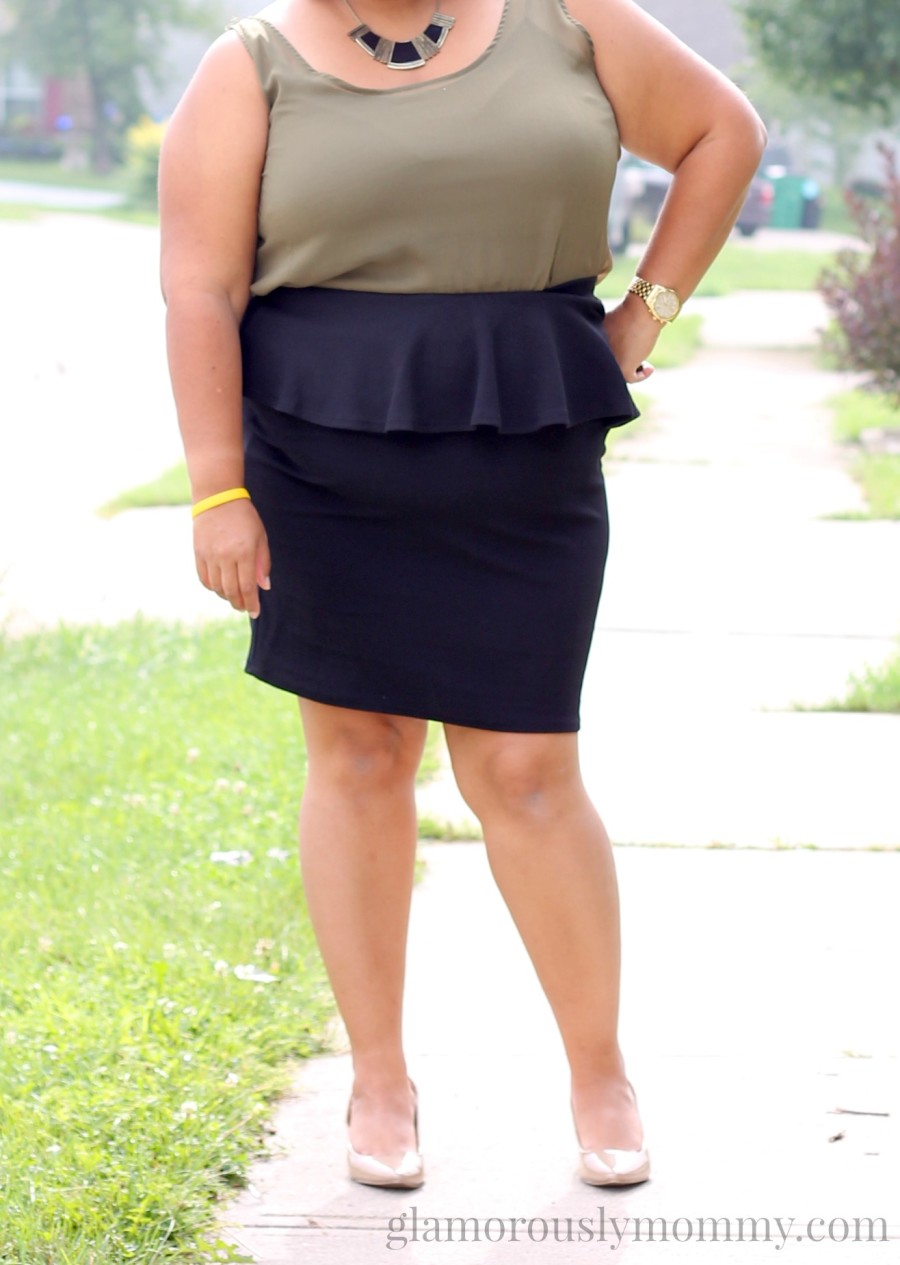 Honestly, I believe every woman, whether you’re plus size or not should own a black pencil skirt and a black peplum skirt. Honestly, what can’t you wear with a black skirt, Right? Peplums are a little more tricky than a black pencil because you have to make sure whatever top you’re wearing is fitted, but are many ways to wear a peplum skirts and I’ll show you how in some upcoming posts.