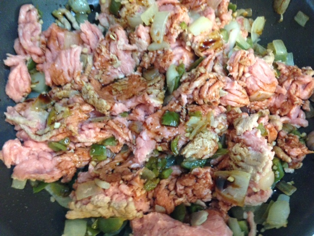 3. Add package thawed ground turkey, mix with veggies and add soy sauce. I like to cook until I get a few crispy pieces. Because, well, who doesn’t like crispy?