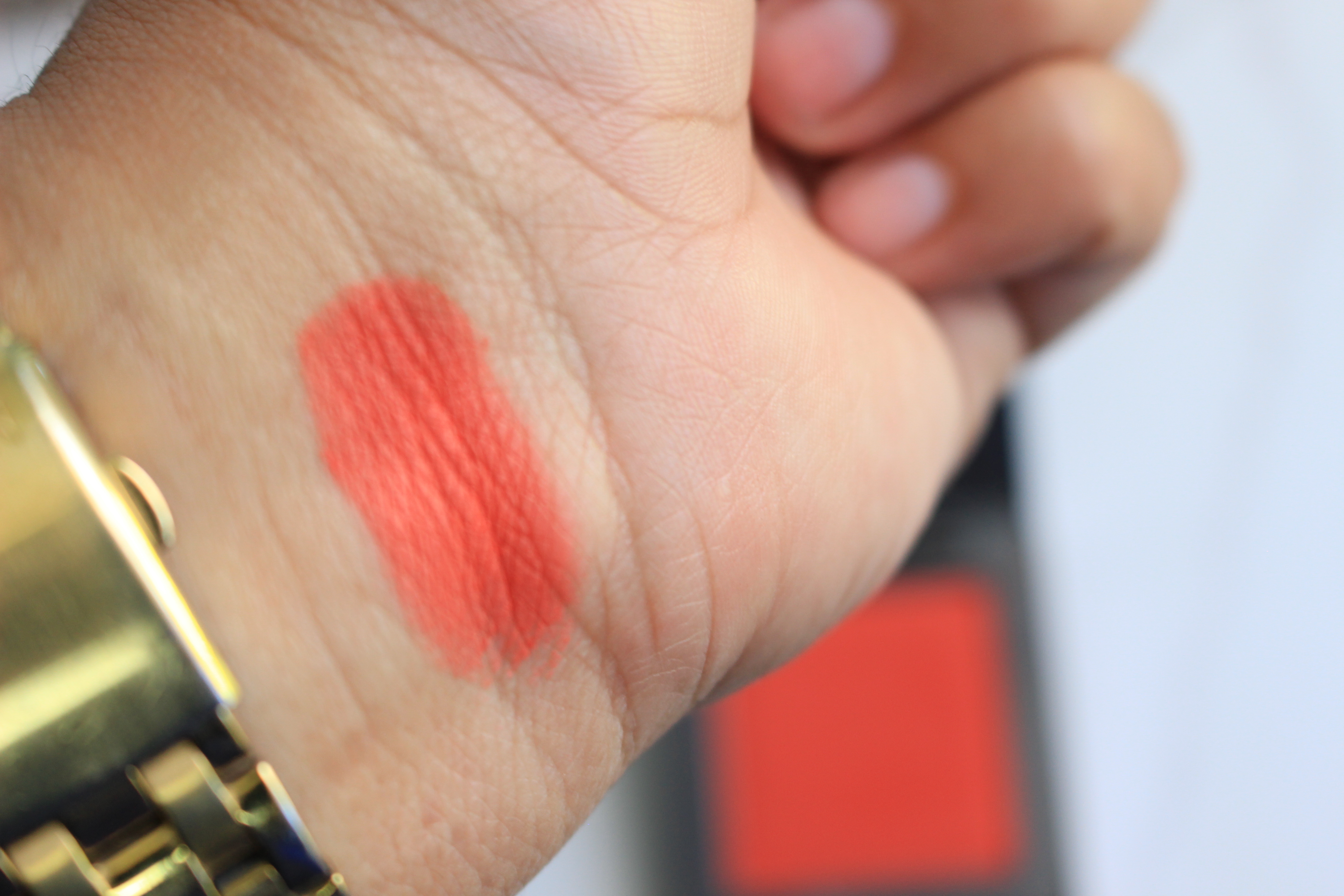 I’ve been into orange toned blushes lately, so when I saw the in BANG- I had to have it! It’s a bright, bold, red- orange-colored blush perfect a natural flushed appearance for tan to dark skin tones.